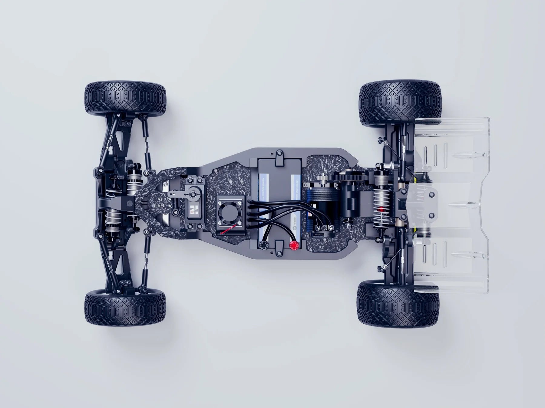 INTRODUCING THE AGAMA N110 1/10th 2wd off-road competition buggy. After years of design and development, including building on the worldwide success of its bigger brother - the Agama N1 1/8th platform - our revolutionary design is finally realised in the 1/10th market. Once again, its unique suspension creates an incredibly low COG (Centre of Gravity) race car, while our engineering teams experience has pushed us to ensure that not only is it fast, but it’s the easiest car to work on in its class, just like its big brother. Lower COG makes the N110 more consistent to drive while being able to hold higher corner speeds. Gliding effortlessly through bumps it stays very flat with less tendency to want to flip over, and in the air, the unique clean aerodynamics have a tremendous effect, working the rear wing to maximum efficiency.