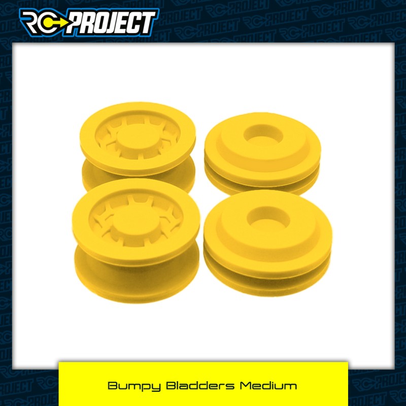 Additional Bumpy and Honeycomb style shock bladders are available separately in Soft and Hard materials, which allows for even finer incremental tuning of rebound depending on driver or track preference.