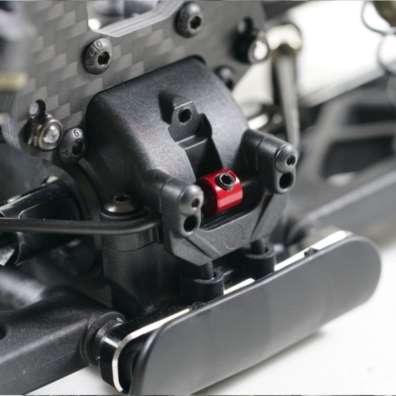 The wing mount holder’s height and angle can be adjusted. The rear width of the S14-4C can be changed with the new Synthesis Rear Hub System and rear CVD modularity.